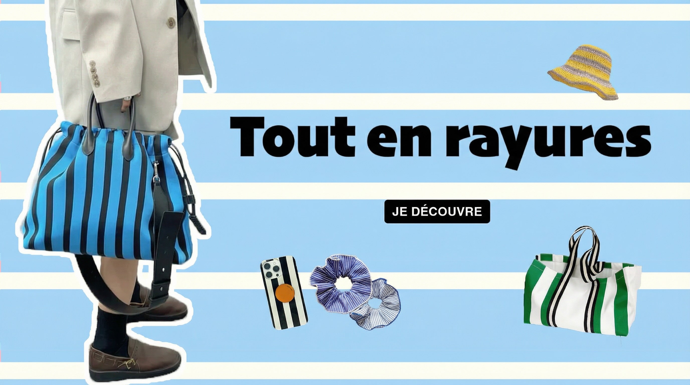 Striped Wide Brim Bucket Hat